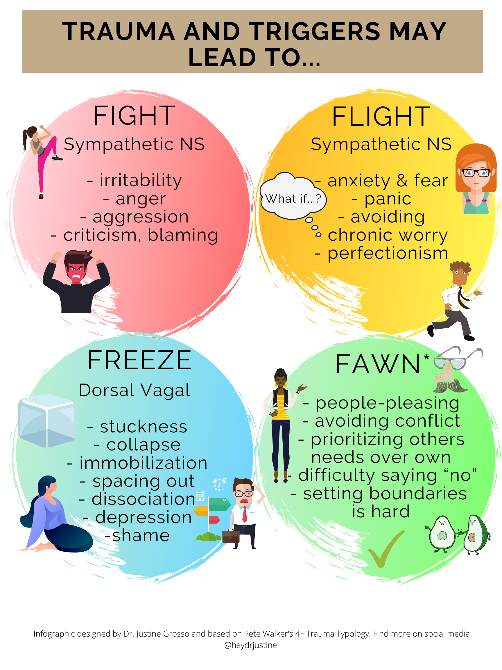 When you’ve experienced a traumatic event or multiple stressful experiences, you may experience these reactions after someone or something reminds you of the past trauma. By understanding how your nervous system works, you can bring awareness to these automatic reactions and take meaningful steps toward healing.